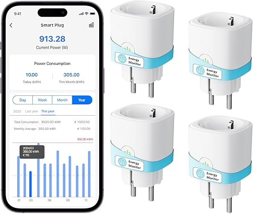 Pack de 4 enchufes inteligentes WiFi compatibles con Apple HomeKit, Alexa, Google y SmartThings. Control remoto, programaciones y temporizadores. Sin necesidad de hub. El mejor pack de enchufes inteligentes del mercado.